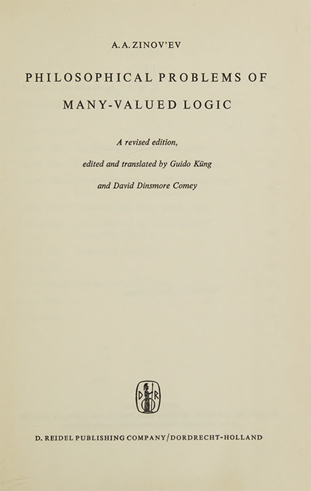 | Publication date | 1963 | This work, written by a young Russian logician at the Institute of philosophy in Moscow, fills a long-empty gap in our literature about many-valued logics. The only previous monograph on many-valued logic in English is primarily mathematical and technical, and only in its introduction does it treat the philosophical problems raised by many-valued logic. In the present work, the author takes up such questions as the ‘unity’ and ‘diversity’ of logic as a whole, the empirical relationship of logic to its object domains, and the relationship between ordinary thinking on the one hand and two-valued and many-valued logics on the other. He also treats briefly the relationship between many-valued logic and the criticisms raised by dialectical logic against traditional formal logic, a section which despite its brevity will be useful to those who are interested in Soviet philosophy. |